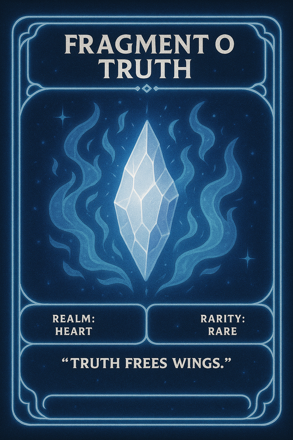 A crystalline shard of piercing white-blue light. When awakened, it slices through illusion and self-deception. This fragment stabilizes Echo’thaar’s ascension by grounding him in unshakeable authenticity.