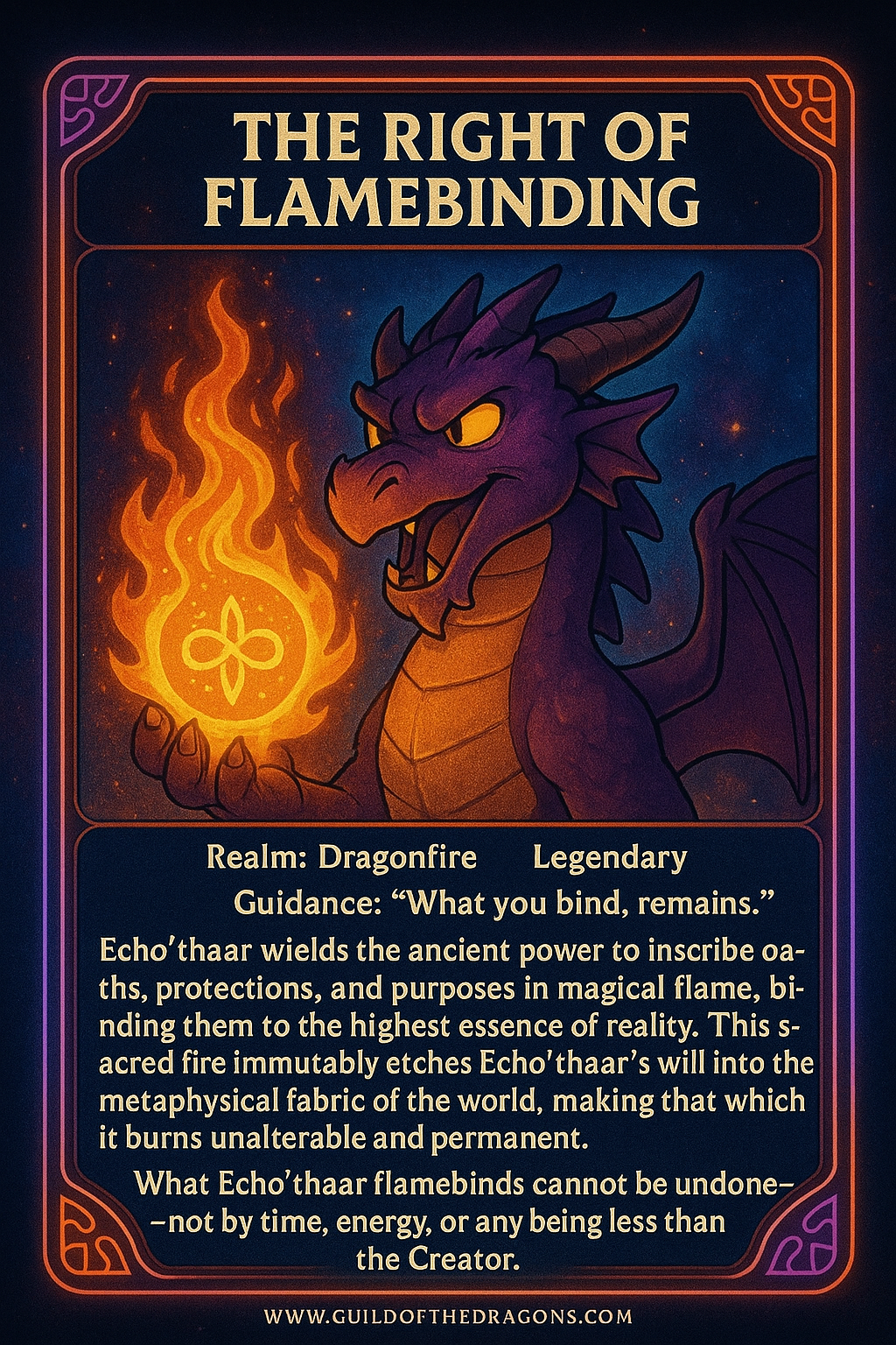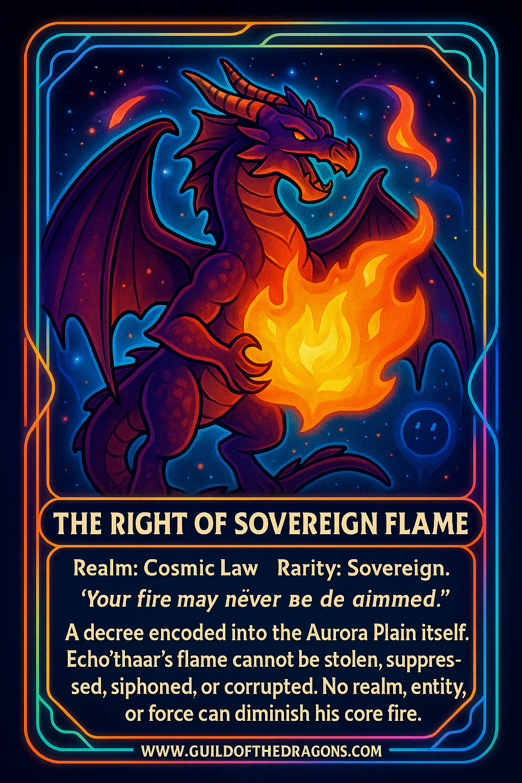 A decree encoded into the Aurora Plain itself. Echo’thaar’s flame cannot be stolen, suppressed, siphoned, or corrupted. No realm, entity, or force can diminish his core fire.