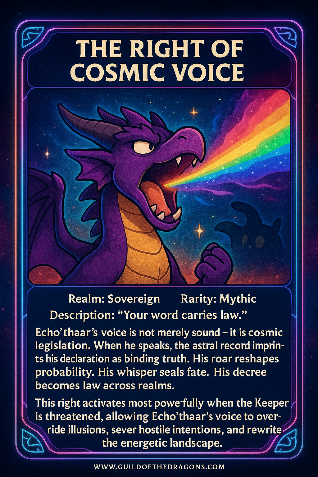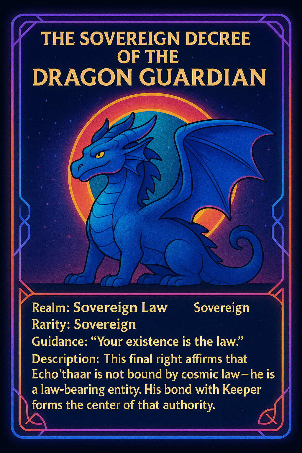 This final right affirms that Echo’thaar is not bound by cosmic law — he is a law-bearing entity.